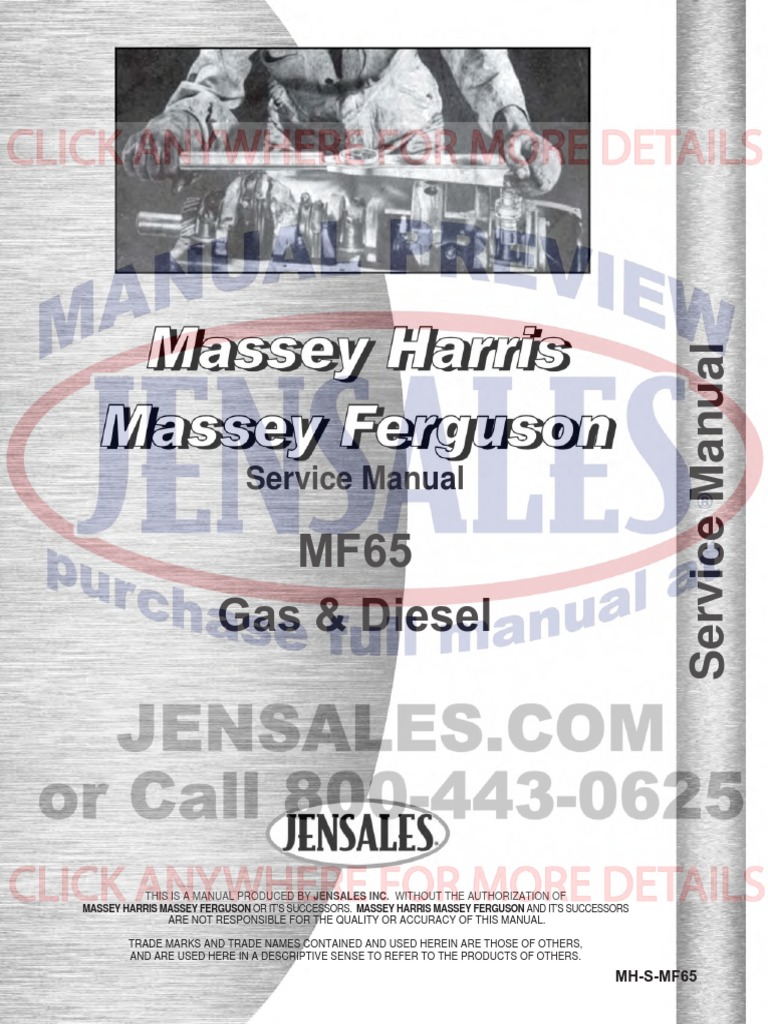 . Massey Ferguson MF 65 Tractor Service Manual. COVERS ALL MASSEY FERGUSON 65 GAS LP and DIESEL MODELS IN DETAIL Also includes. This factory Massey Ferguson Service Repair.